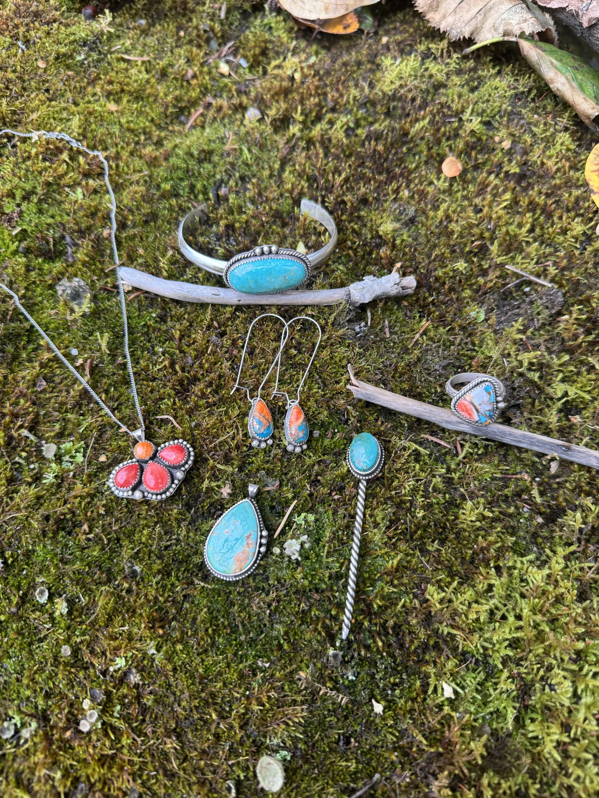 Turquoise Pendant $70.00 Spiny Oyster Necklace $115.00 Emerald valley turquoise ring (size 5) $60.00 Turquoise Hat Pin $40.00
